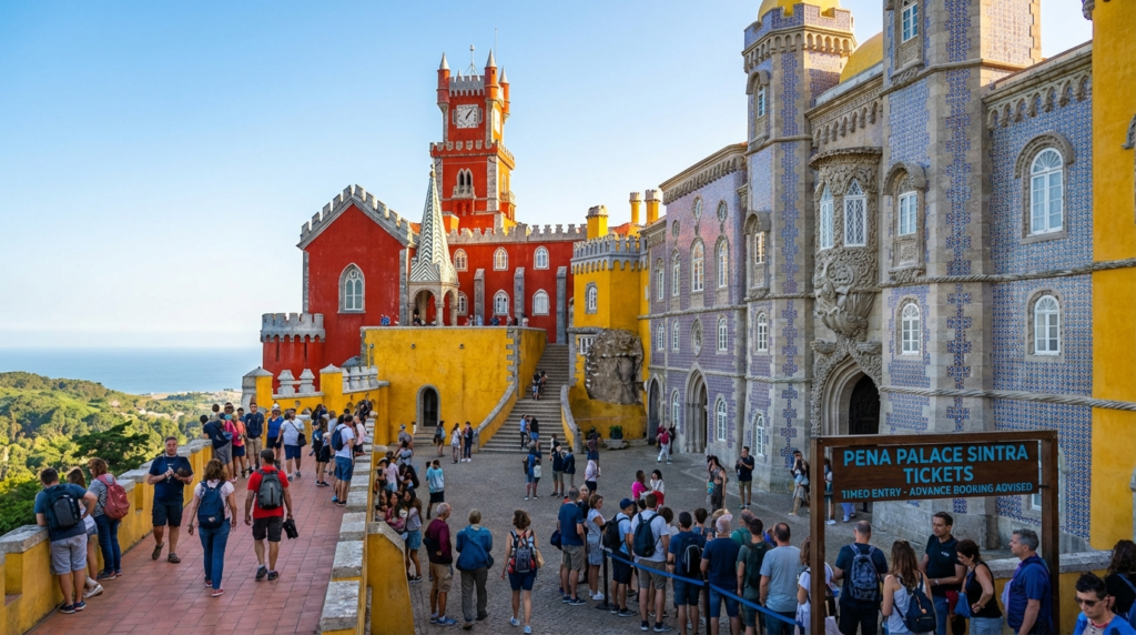 Pena Palace (essential): Book at least one week ahead during peak season (April-October). Timed-entry tickets sell out quickly, and same-day availability is extremely limited. Choose the earliest available slot to beat crowds.